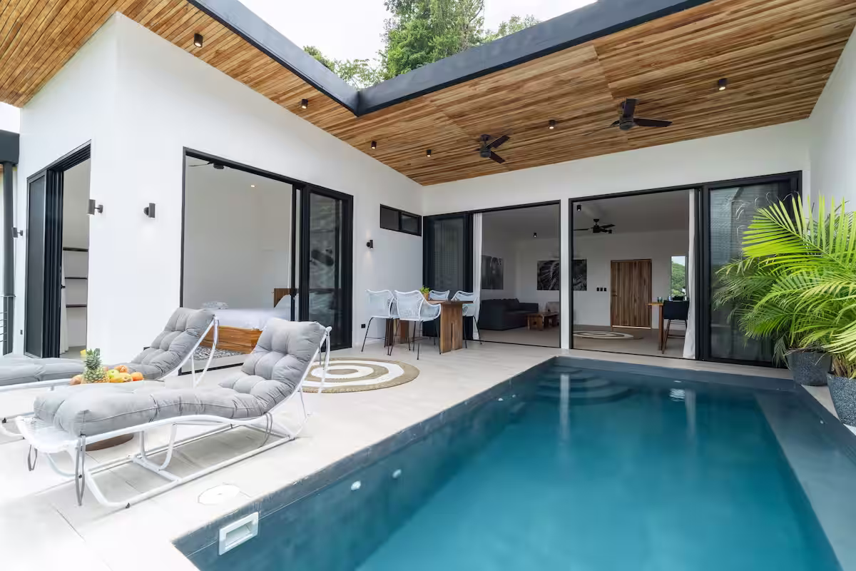 A hidden gem in Santa Teresa, this villa offers a unique layout that maximizes privacy and jungle views. Two bedrooms with king-size beds, a private pool, and modern amenities create a perfect balance of comfort and nature.